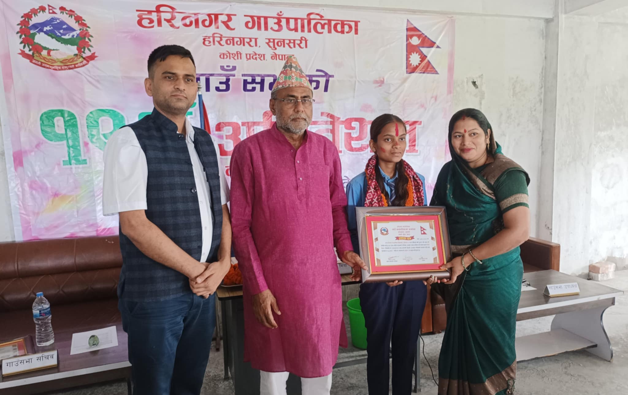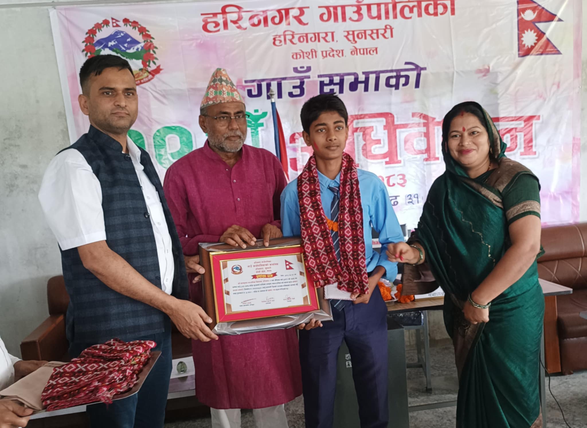 हरिनगर गाउँपालिकाको १९ औँ गाउँ सभाको अवसरमा एसईई २०८१ सालको परीक्षामा पालिका भरि नै सबैभन्दा उत्कृष्ट नतिजा ल्याउने श्री बाल कृष्ण मावि भुटाहाका छात्र अम्मार अन्सारी, त्सतै हरिनगरा उच्च मावि हरिनगरा छात्रालाई पनि सम्मान-पत्र र व्याग दिएर