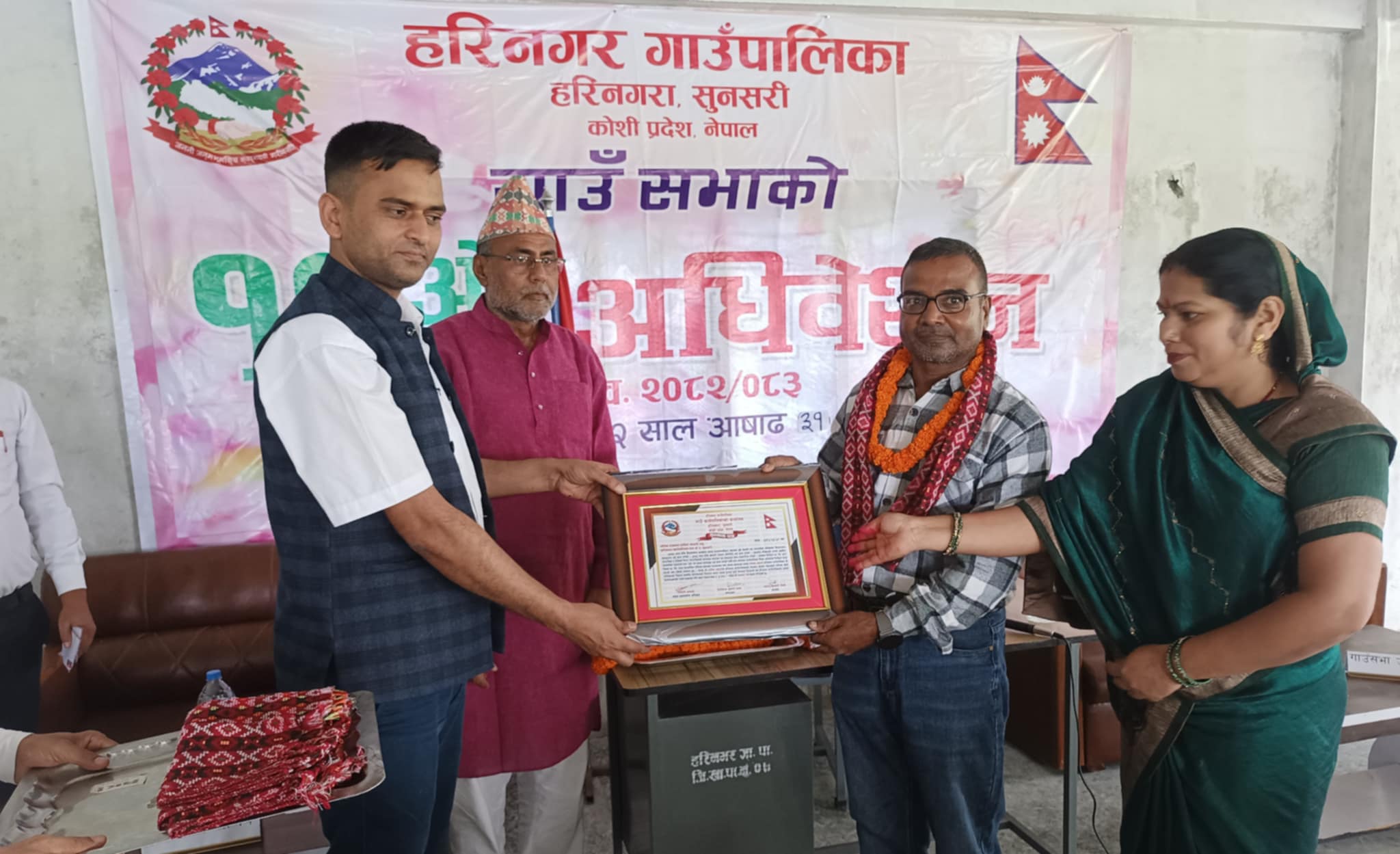 हरिनगर गाउँपालिकाको १९ औँ गाउँ सभाको अवसरमा कलमको माध्यमबाट समग्र पालिकको विकासमा पुर्याएको योगदानको उच्च मुल्यांकन गरि तपाई श्री नसीम अन्सारीलाई पालिकाले वर्ष २०८२ उत्कृष्ट पत्रकारिता पुरस्कार नगदसहित यो सम्मान-पत्र प्रदान सम्मान गरिएको छ।
